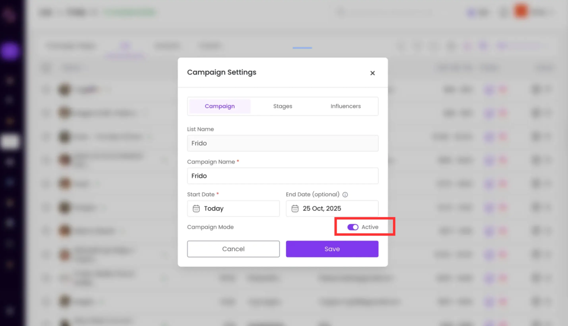 You’ll still be able to view stages, analytics, and logged content— but can’t move influencers or log new posts. This means your campaign data is preserved and locked, especially for time-sensitive seasonal campaigns.