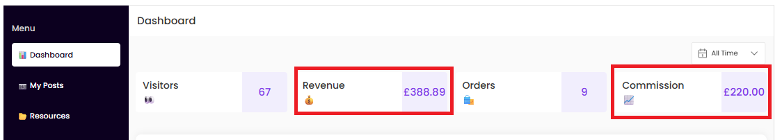Influencer DashboardThe Influencer Dashboard shows all-time commissions.