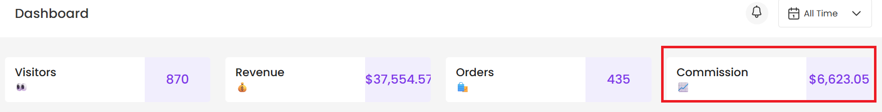 Commission in Performance and Influencer DashboardIncludes both paid and pending commissions.